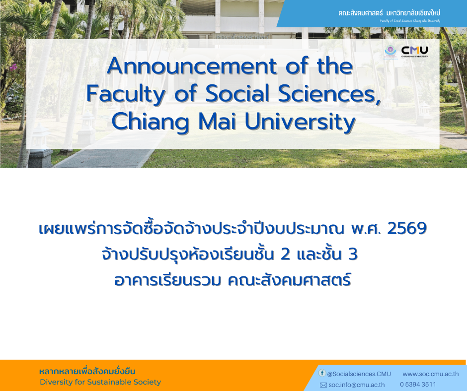 เผยแพร่การจัดซื้อจัดจ้างประจำปีงบประมาณ พ.ศ. 2569 จ้างปรับปรุงห้องเรียนชั้น 2 และชั้น 3 อาคารเรียนรวม คณะสังคมศาสตร์