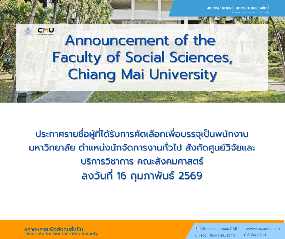รายชื่อผู้ที่ได้รับการคัดเลือกเพื่อบรรจุเป็นพนักงานมหาวิทยาลัย ตำแหน่งนักจัดการงานทั่วไป สังกัดศูนย์วิจัยและบริการวิชาการ คณะสังคมศาสตร์