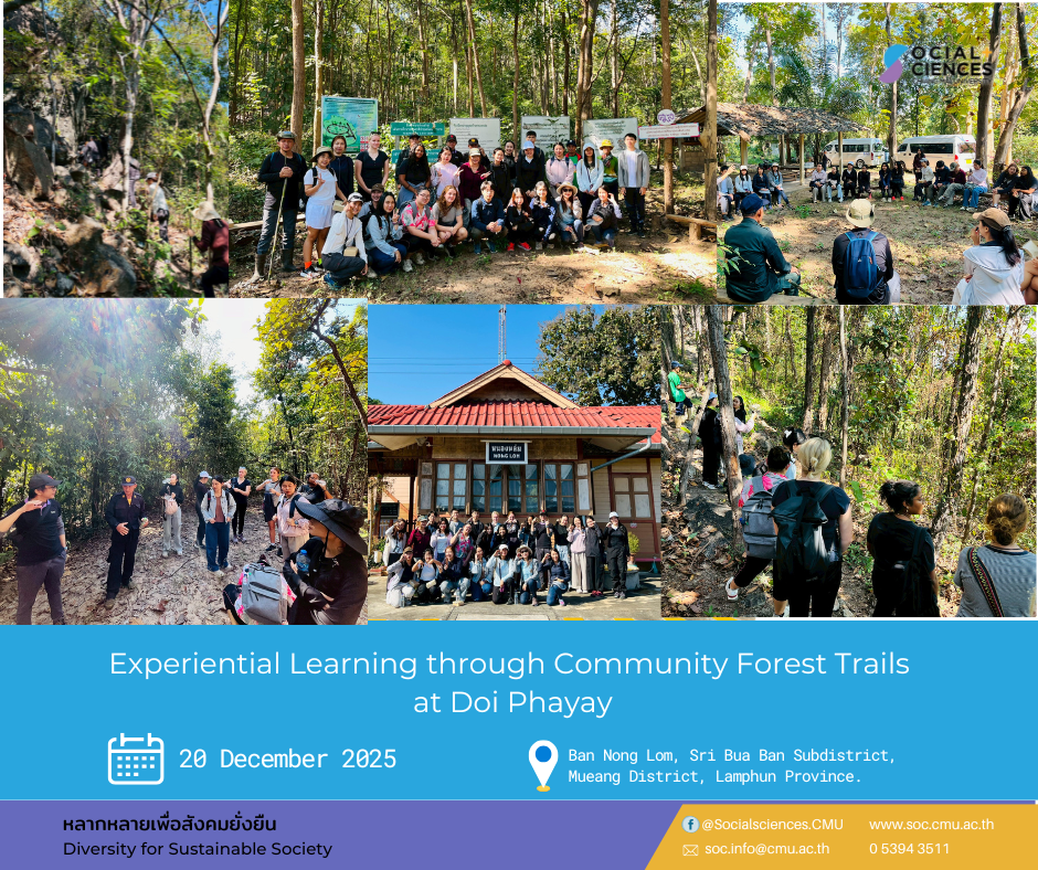 เมื่อวันเสาร์ที่ 20 ธันวาคม 2568 ศูนย์วิจัยและบริการวิชาการ คณะสังคมศาสตร์ มหาวิทยาลัยเชียงใหม่ นำทีมโดย รองศาสตราจารย์ ดร.วสันต์ ปัญญาแก้ว หัวหน้าโครงการ นำนักศึกษาและบุคลากรจากมหาวิทยาลัยเชียงใหม่หลากหลายคณะ ได้แก่ คณะสังคมศาสตร์ คณะบริหารธุรกิจ คณะวิศวกรรมศาสตร์ คณะรัฐศาสตร์ คณะเศรษฐศาสตร์ รวมถึงนักศึกษาแลกเปลี่ยน (Exchange Students) รวมทั้งสิ้น 30 คน เข้าร่วมกิจกรรม