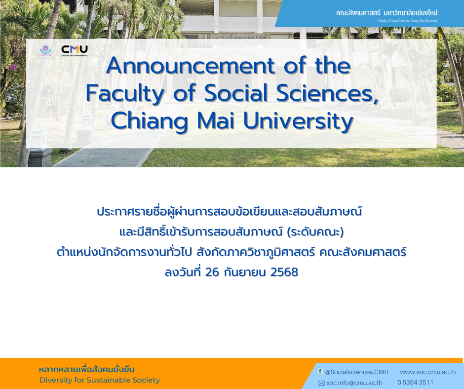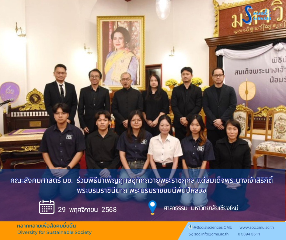 คณะสังคมศาสตร์ มหาวิทยาลัยเชียงใหม่ 239 ถ.ห้วยแก้ว ต.สุเทพ อ.เมือง จ.เชียงใหม่ 50200