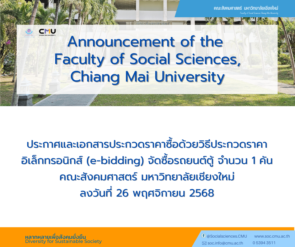 ประกวดราคาจ้างเหมาบริการทำความสะอาดอาคารและพื้นที่คณะสังคมศาสตร์ มหาวิทยาลัยเชียงใหม่