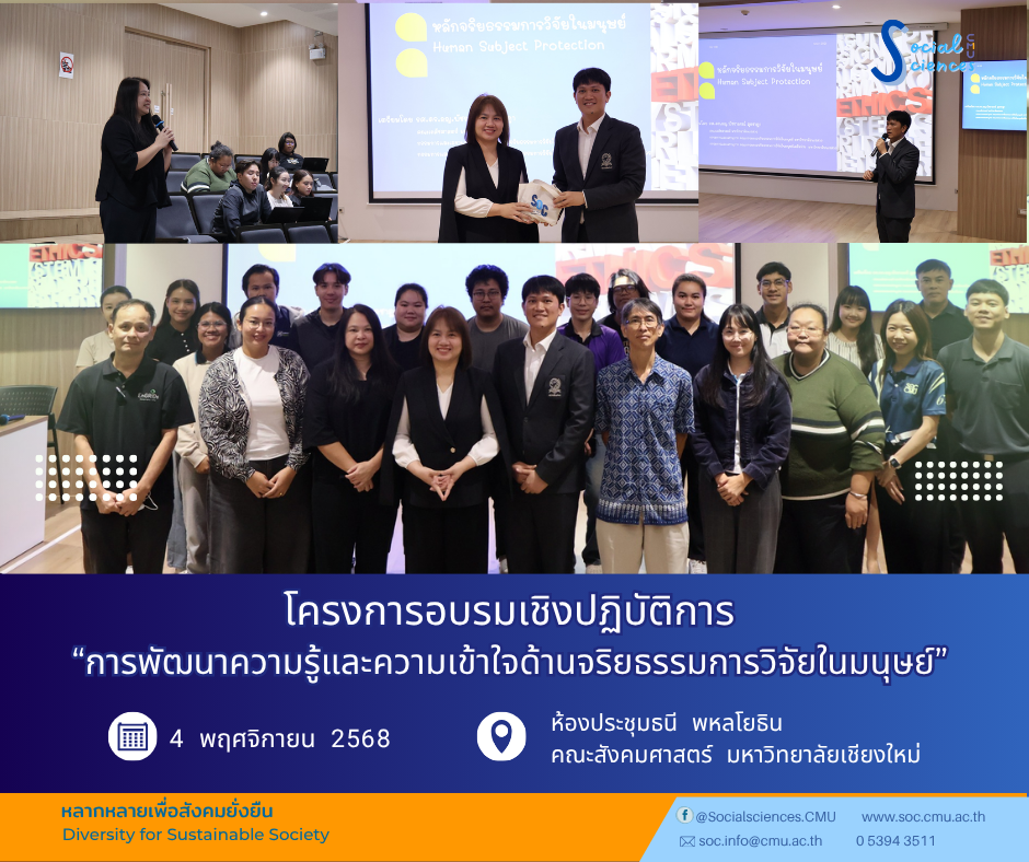 โครงการอบรมเชิงปฏิบัติการ “การพัฒนาความรู้และความเข้าใจด้านจริยธรรมการวิจัยในมนุษย์”