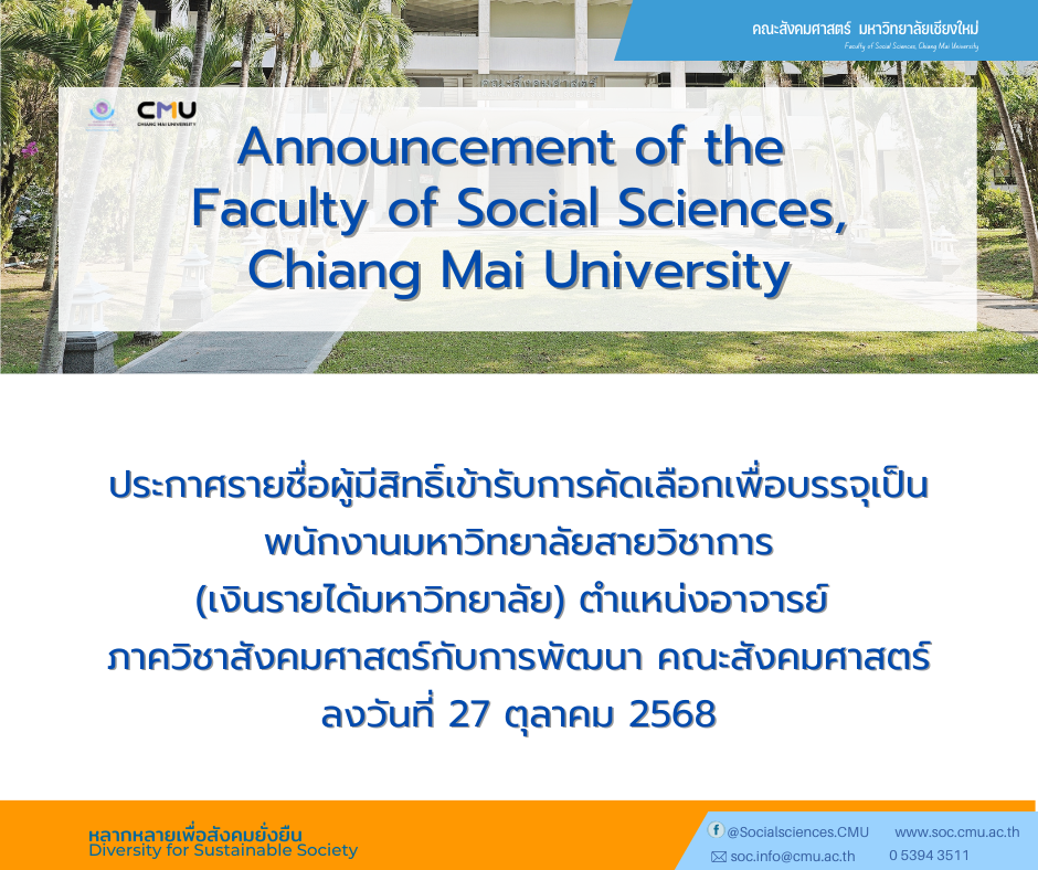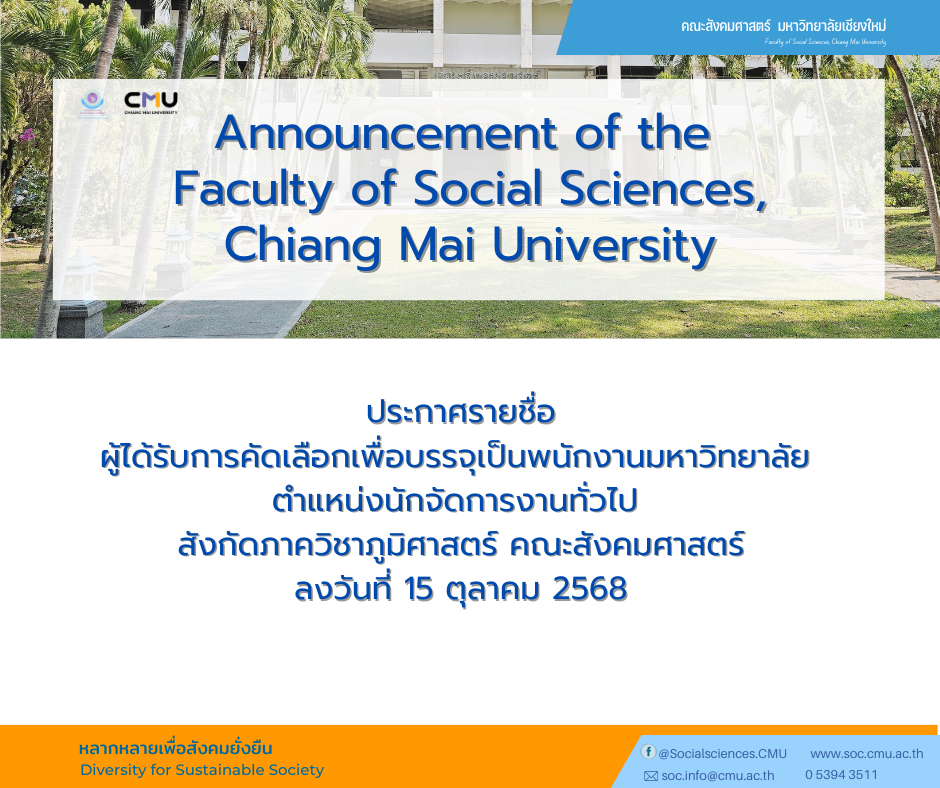 รายชื่อผู้ที่ได้รับการคัดเลือกเพื่อบรรจุเป็นพนักงานมหาวิทยาลัย ตำแหน่งอาจารย์ ภาควิชาสังคมวิทยาและมานุษยวิทยา