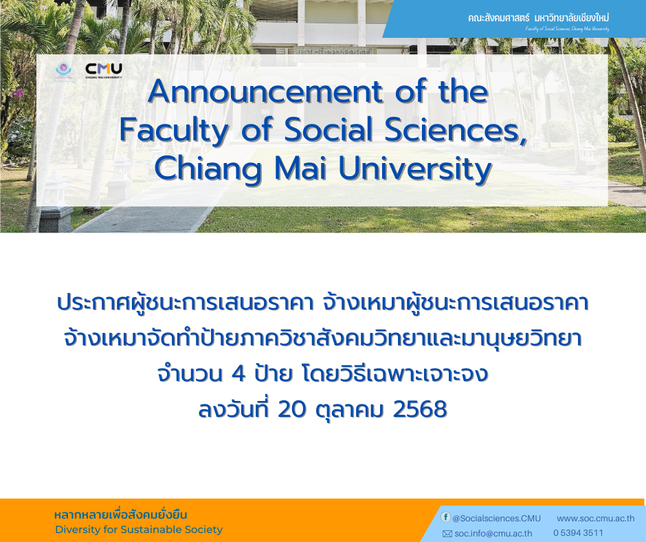 ประกาศ คณะสังคมศาสตร์ มหาวิทยาลัยเชียงใหม่ เรื่อง