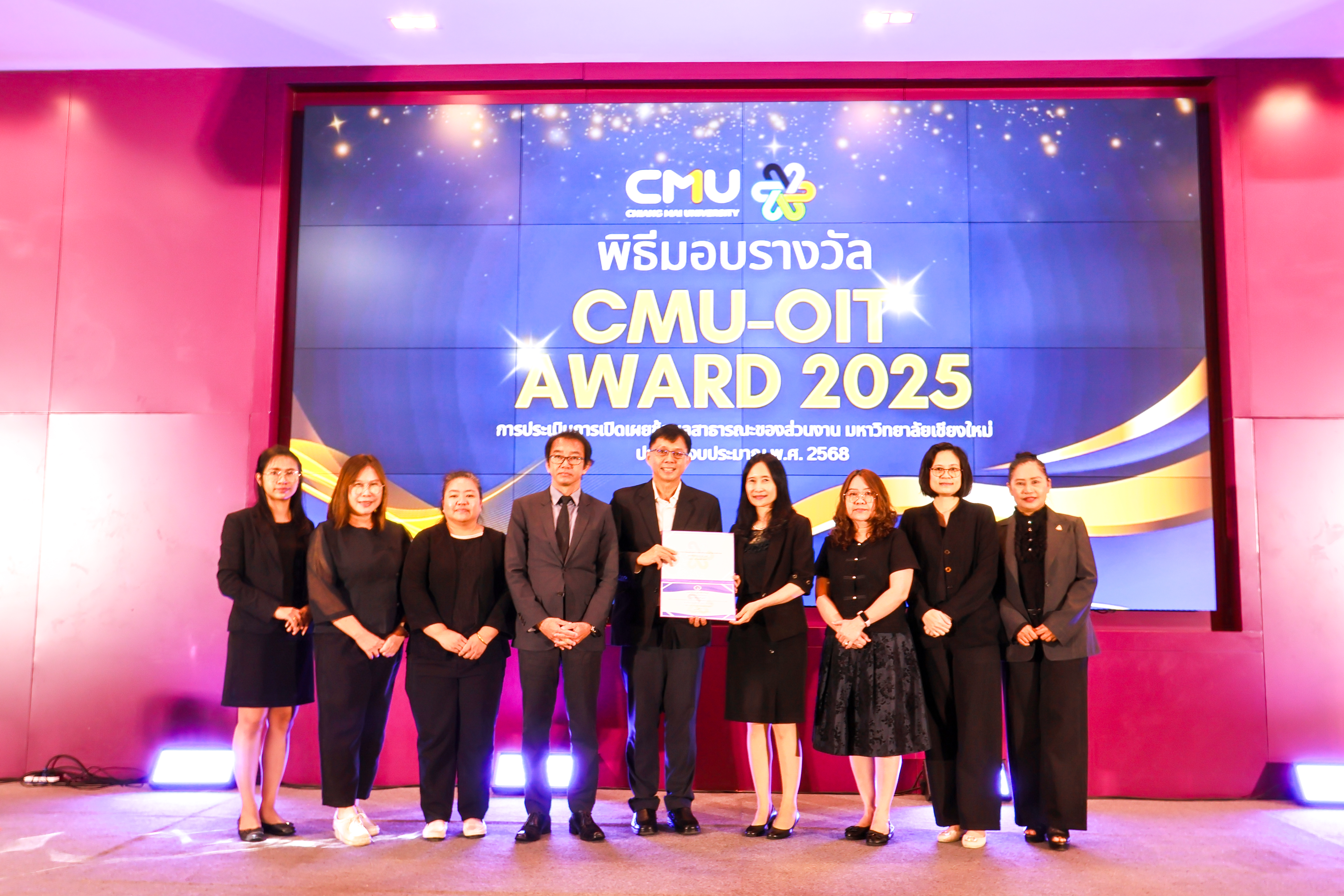 เมื่อวันที่ 5 พฤศจิกายน 2568 รองศาสตราจารย์ ดร.วสันต์ ปัญญาแก้ว คณบดีคณะสังคมศาสตร์ และ คุณสิทธิพร ฤทธิสรไกร หัวหน้างานเทคโนโลยีสารสนเทศและนวัตกรรม เป็นผู้แทนคณะฯ เข้ารับเกียรติบัตร CMU-OIT Award 2025 ระดับ “ดีเยี่ยม”