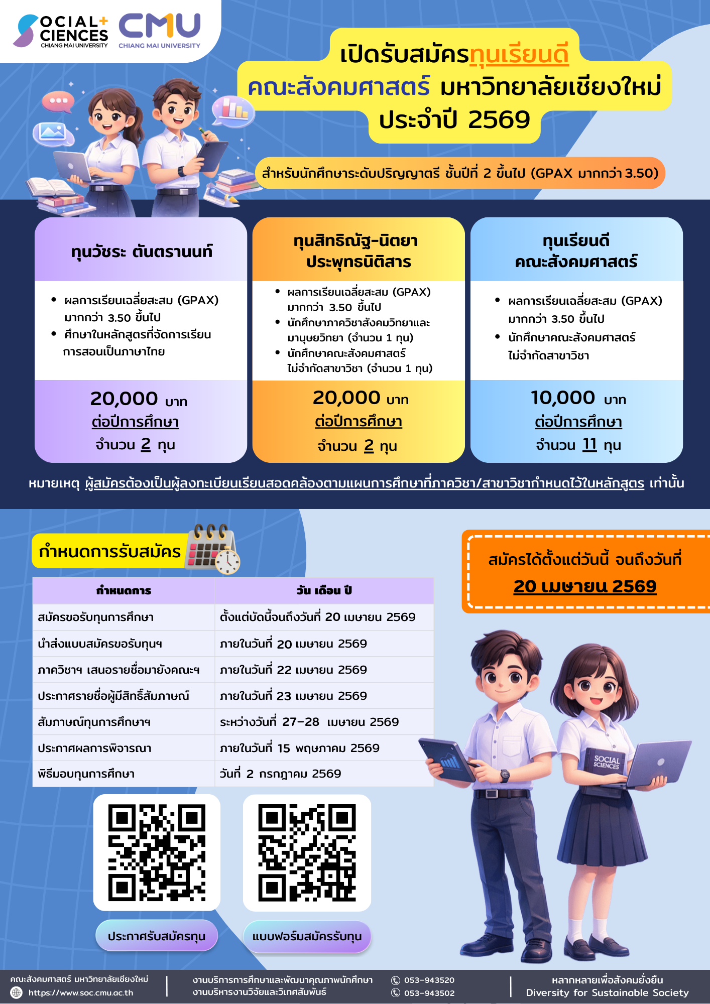 ทุนเรียนดี คณะสังคมศาสตร์ จำนวน 11 ทุน ทุนละ 10,000 บาท ต่อปีการศึกษา